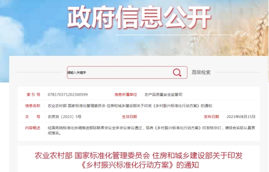 農(nóng)業(yè)農(nóng)村部等三部門聯(lián)合印發(fā)《鄉(xiāng)村振興標(biāo)準(zhǔn)化行動(dòng)方案 》