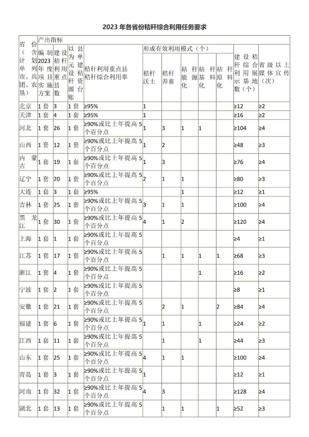 2.2023年各省份秸稈綜合利用任務要求