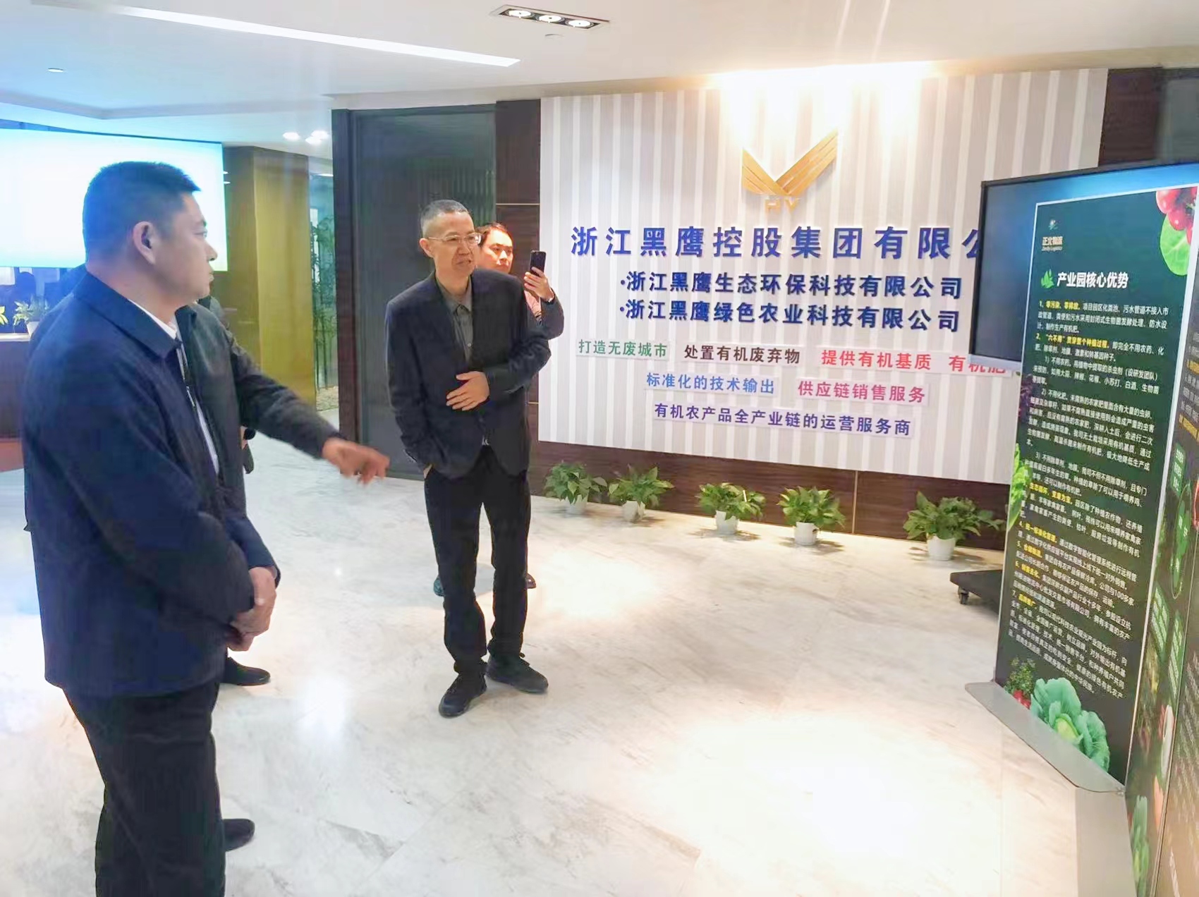4月6日,江蘇省宜興市委常委、周副市長,生態環境局唐局長,萬石鎮唐書記等一行蒞臨浙江黑鷹控股集團有限公司考察,并就【打造無廢城市,從有機廢棄物處理到科技農業的生態環保項目】進行深入交流。