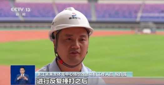 浙江省黃龍?bào)w育中心場(chǎng)館改造項(xiàng)目工作人員 祝自強(qiáng):現(xiàn)場(chǎng)我們是配備了兩臺(tái)破碎機(jī),它是通過(guò)機(jī)器里面的板錘進(jìn)行反復(fù)捶打之后,通過(guò)五個(gè)粒徑不同的口出來(lái),一個(gè)是0到5毫米,再一個(gè)是5到10毫米,再一個(gè)是10到30毫米,30到50毫米,50毫米以上,總共是五種粒徑,它有不同的用處。
