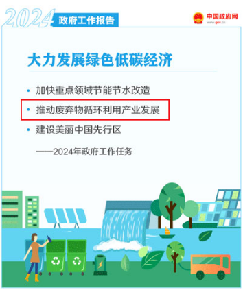 作為唯一一個被政府工作報告“點名”的環保細分產業,廢棄物循環利用產業可謂相當榮幸。這同時也透露出一個信號——2024年,廢棄物循環利用產業將成為國家大力推動發展的一個環保細分領域。